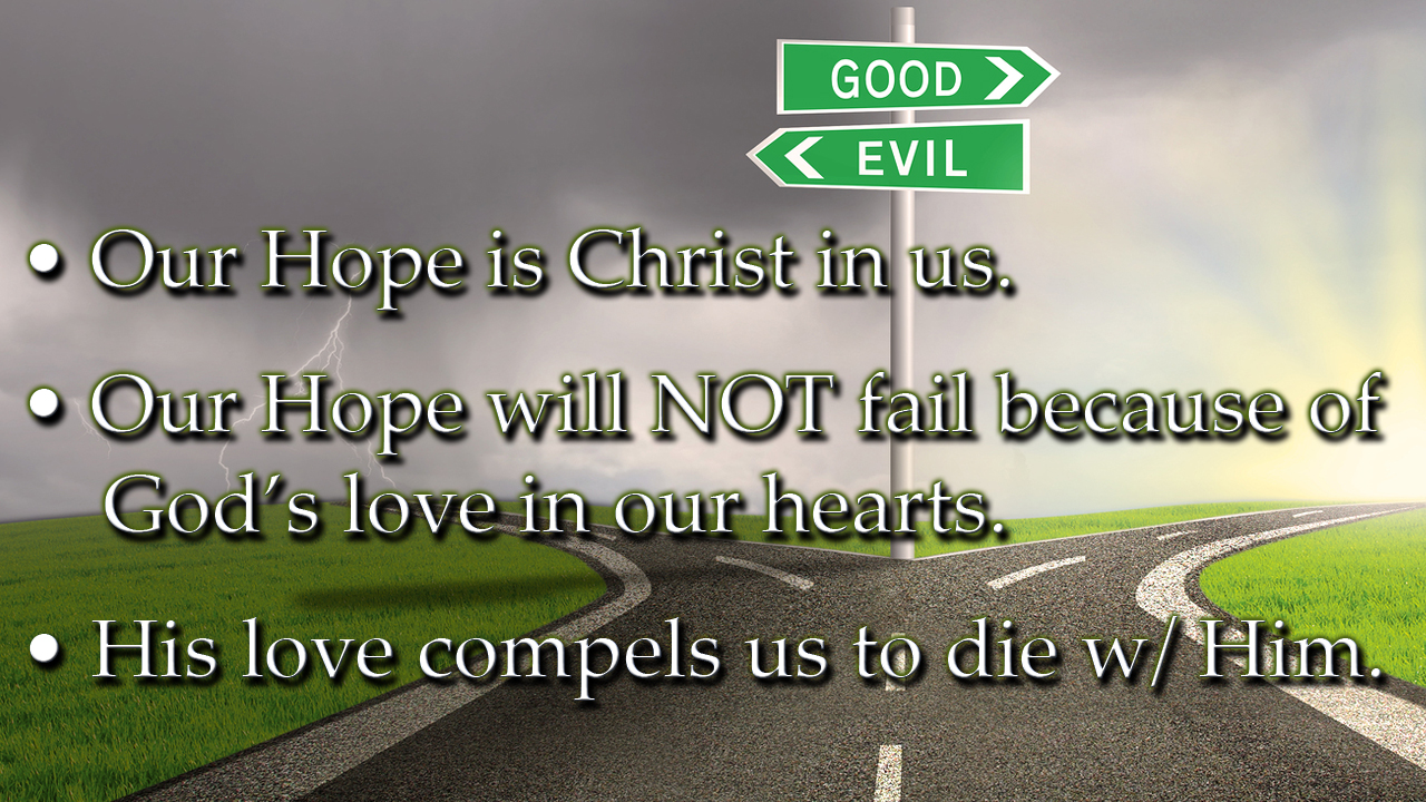 Last week we concluded with Rom. 5:1-5 & 2 Cor. 5